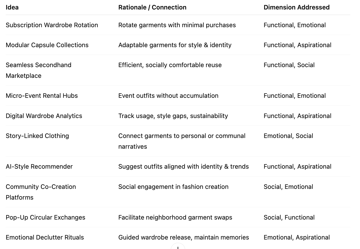 These contrasting scenarios highlight a significant issue: current fashion delivery and recycling systems fail to deliver the outcomes urban Europeans truly seek. People aren’t just purchasing garments; they’re hiring them to express identity, navigate social pressures, act sustainably, manage time, and preserve personal meaning.